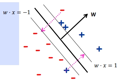 For all \(i\)\(y_i\omega\cdot x_i \geq 1-\xi_i\)\(\xi_i \geq 0\)