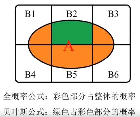 可以通过 \(P(A)=P(AS)\) 然后拆分 \(S\) 进行推导。由互不相容,可以得到 \(\sum^n_{i=1}P(AB_i)\) 进而得到全概率公式。